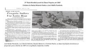 No Campeonato Mundial Juvenil da Classe Pinguim de 1966, realizado nos Estados Unidos, os talentosos velejadores Cristiano da Rocha Miranda Pontes e José Adolfo Paradeda fizeram história ao conquistar o primeiro título mundial juvenil da classe para o Iate Clube de Brasília.