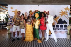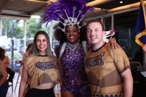O buffet, cuidadosamente elaborado, oferece uma feijoada completa com carnes servidas separadamente, acompanhamentos clássicos e uma seleção de sobremesas. O open bar complementa a experiência, trazendo drinks, chopp e bebidas variadas. A decoração temática e a recepção calorosa tornam o ambiente ainda mais especial, reforçando o espírito festivo do Carnaval.