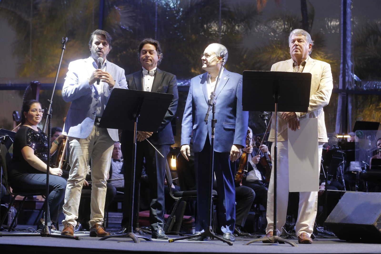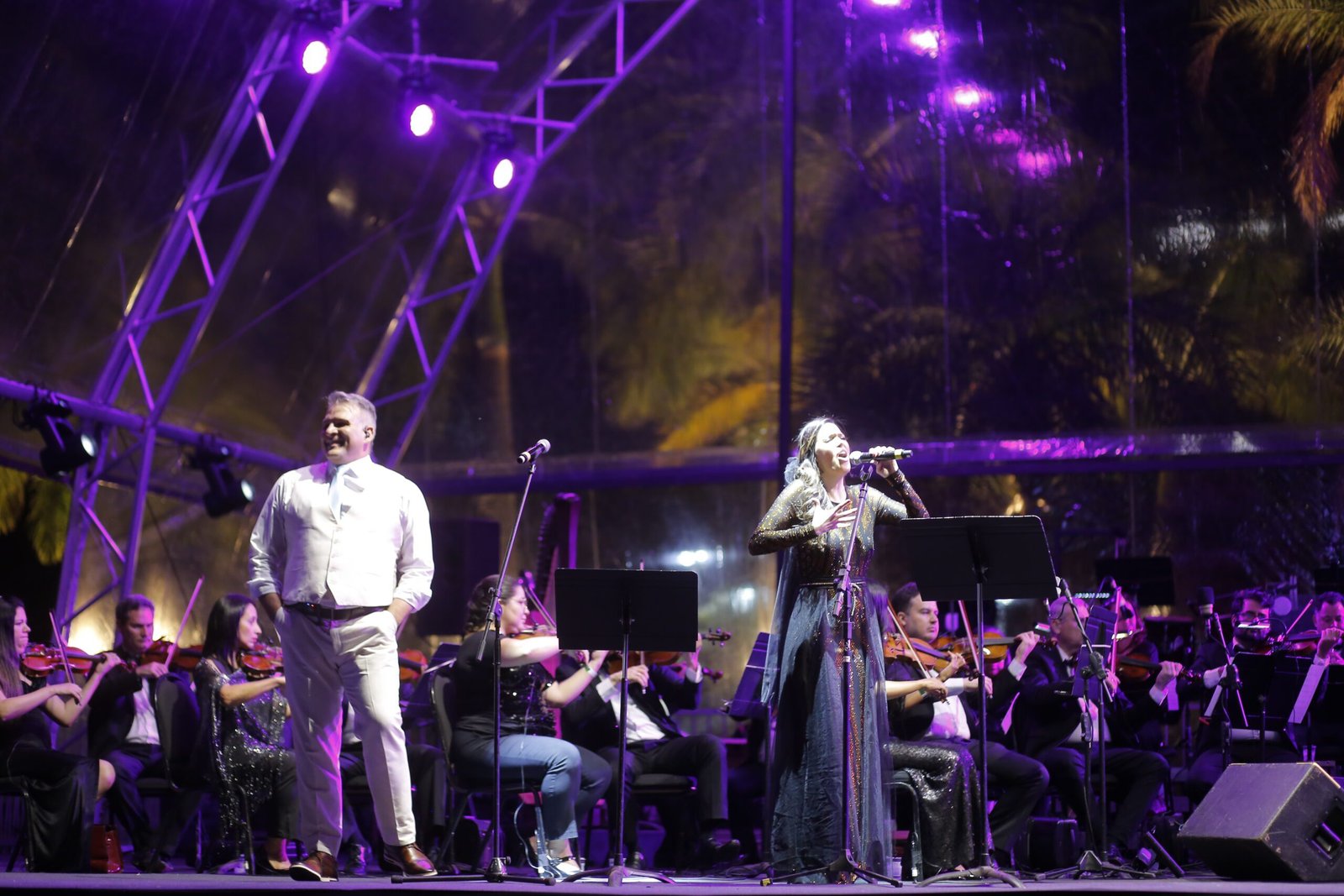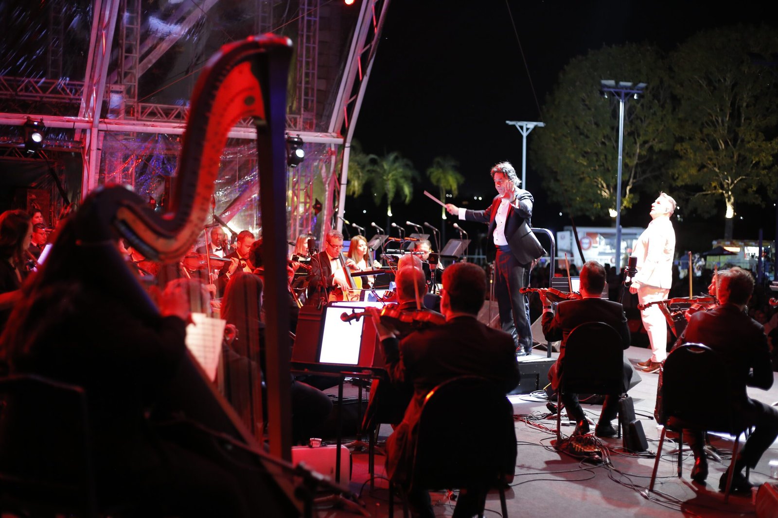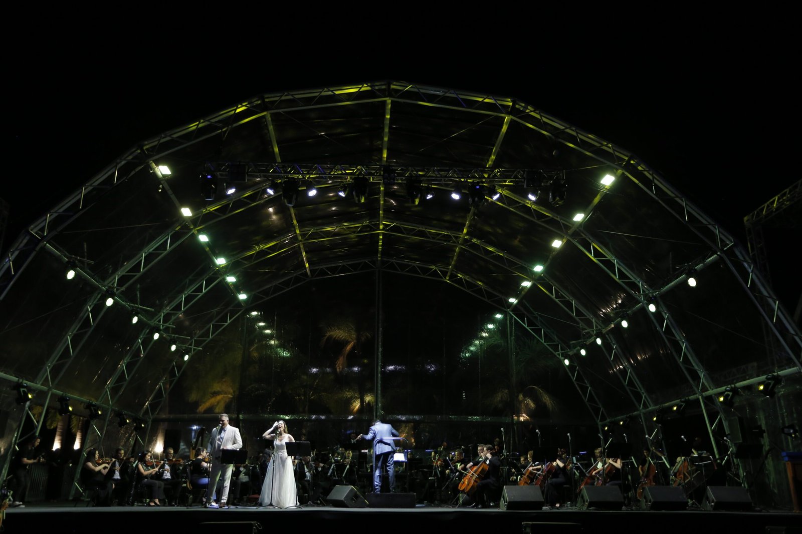 A apresentação ficou por conta da Orquestra Sinfônica do Teatro Nacional Cláudio Santoro (OSTNCS), sob a regência do maestro Cláudio Cohen, com participação especial dos cantores Sara Sarres e Saulo Vasconcelos, ambos reconhecidos por suas trajetórias no teatro musical brasileiro. O palco transparente montado às margens do Lago Paranoá proporcionou uma experiência visual única, com o pôr do sol servindo de cenário natural para o concerto.
